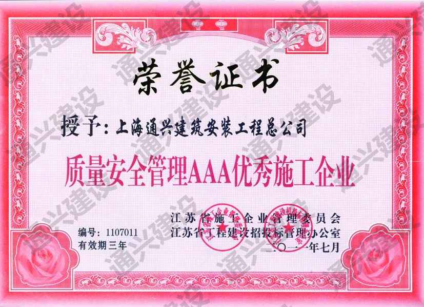 质量安全管理AAA优秀施工企业